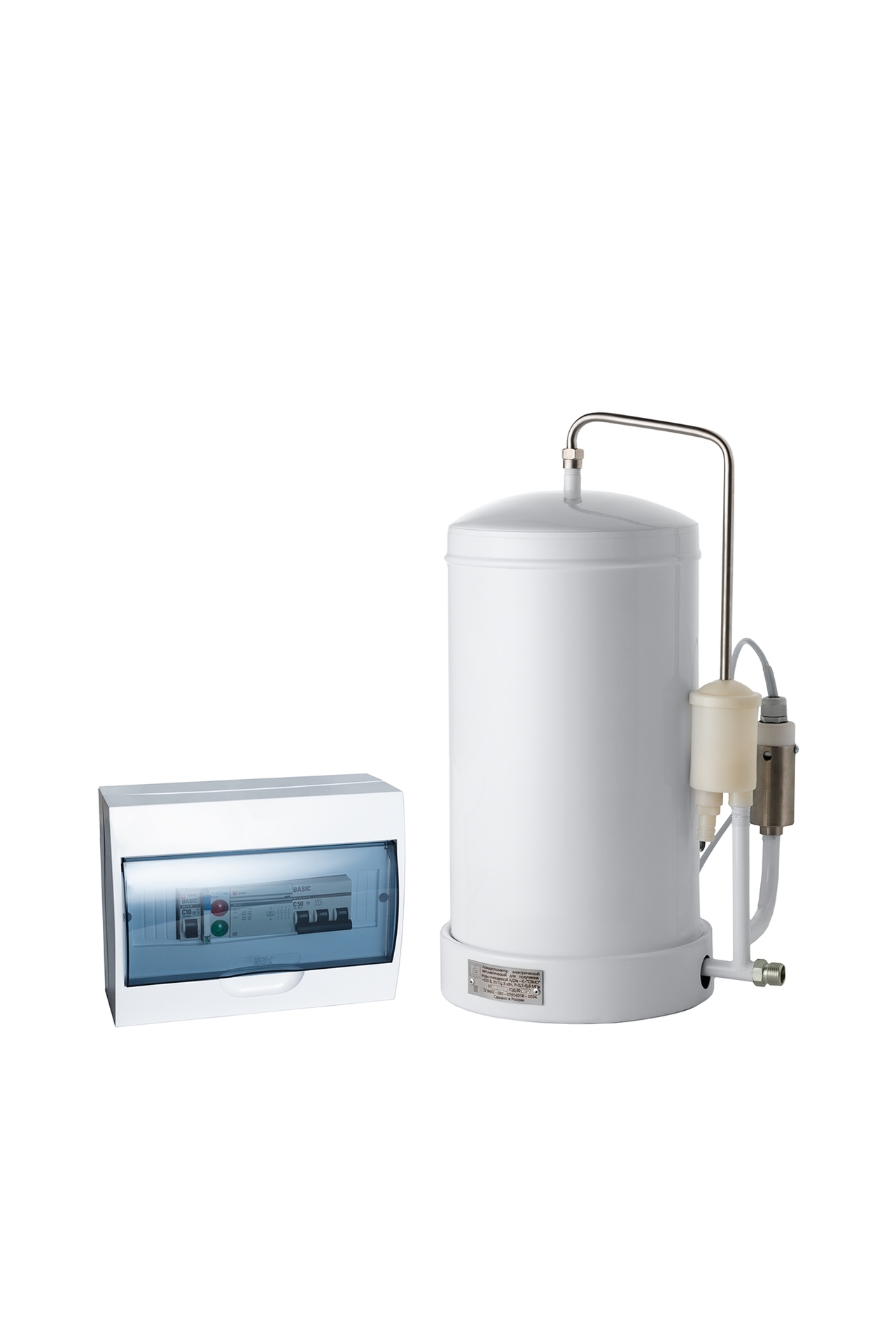 Аквадистиллятор АДЭа-4-«СЗМО» — автоматический электрический аппарат производительностью 4 л/ч, предназначенный для получения очищенной воды в аптеках, лабораториях и больницах. Изготовлен из нержавеющей стали, оснащен медными ТЭНами и автоматической защитой, отключающей нагрев при низком уровне воды.